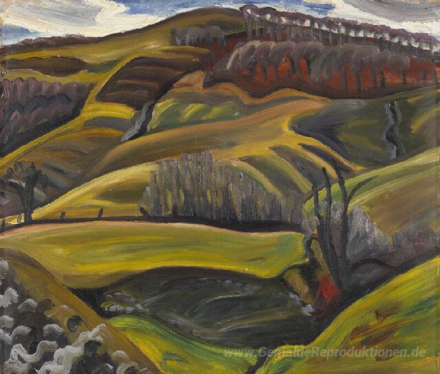 Wir bieten Ihnen eine handgefertigte Reproduktion auf Leinwand des berühmten Kunstwerks 'Landschaft' von Prudence Heward, aus dem Reproduktionsmuseum.