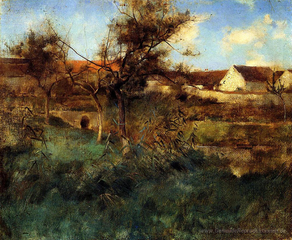 Wir bieten Ihnen eine handgefertigte Reproduktion auf Leinwand des berühmten Kunstwerks 'Landschaft' von Willard Metcalf, aus dem Reproduktionsmuseum.