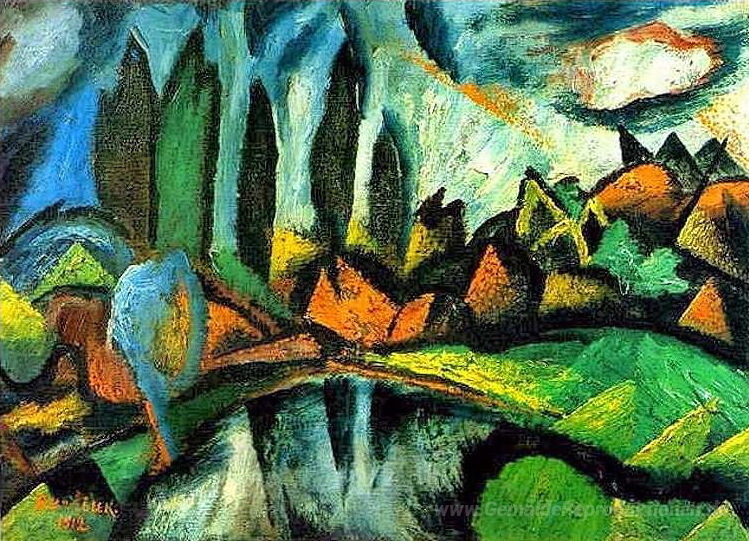Wir bieten Ihnen eine handgefertigte Reproduktion auf Leinwand des berühmten Kunstwerks 'Landschaft' von David Burliuk, aus dem Reproduktionsmuseum.
