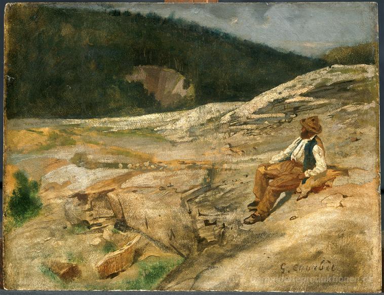 Wir bieten Ihnen eine handgefertigte Reproduktion auf Leinwand des berühmten Kunstwerks 'Landschaft' von Gustave Courbet, aus dem Reproduktionsmuseum.