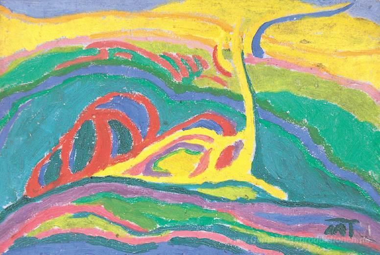 Wir bieten Ihnen eine handgefertigte Reproduktion auf Leinwand des berühmten Kunstwerks 'Landschaft' von Janos Mattis-Teutsch, aus dem Reproduktionsmuseum.
