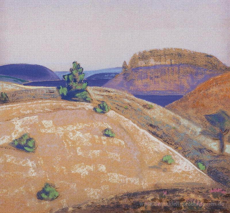 Wir bieten Ihnen eine handgefertigte Reproduktion auf Leinwand des berühmten Kunstwerks 'Landschaft' von Nicholas Roerich, aus dem Reproduktionsmuseum.