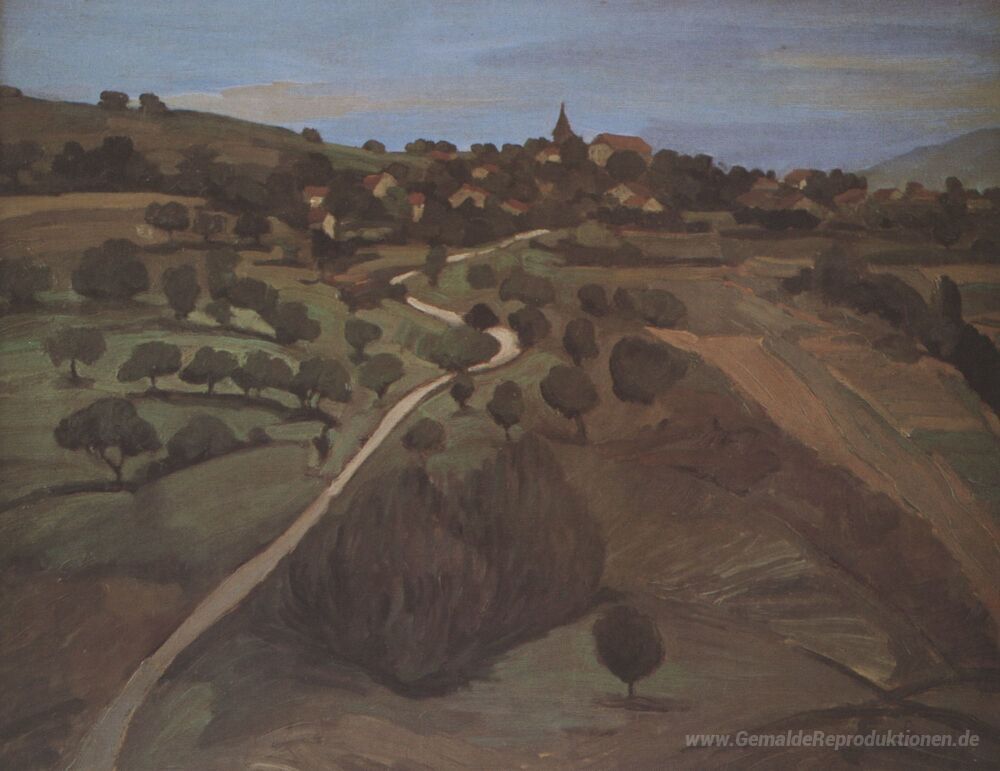 Wir bieten Ihnen eine handgefertigte Reproduktion auf Leinwand des berühmten Kunstwerks 'Landschaft von Belmont' von Theophile Steinlen, aus dem Reproduktionsmuseum.