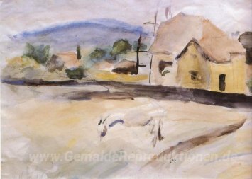 Wir bieten Ihnen eine handgefertigte Reproduktion auf Leinwand des berühmten Kunstwerks 'Landschaft von Eichenau' von George Bouzianis, aus dem Reproduktionsmuseum.
