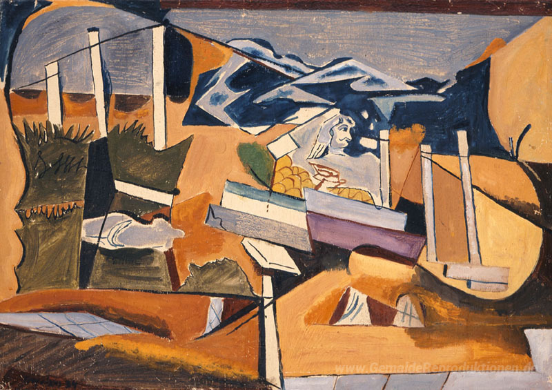 Wir bieten Ihnen eine handgefertigte Reproduktion auf Leinwand des berühmten Kunstwerks 'Landschaft von Olympia' von Yiannis Tsaroychis, aus dem Reproduktionsmuseum.