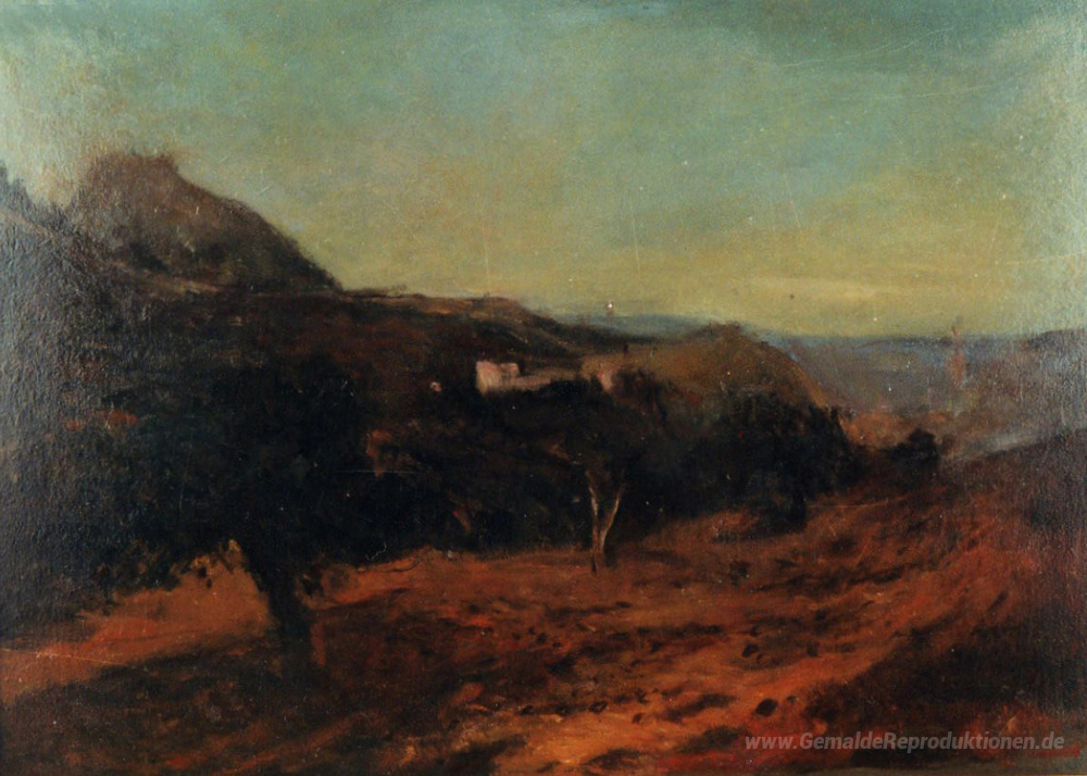 Wir bieten Ihnen eine handgefertigte Reproduktion auf Leinwand des berühmten Kunstwerks 'Landschaft von Xàtiva' von Alejandro Cabeza, aus dem Reproduktionsmuseum.