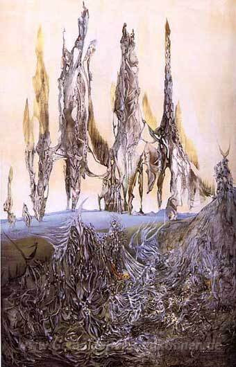 Wir bieten Ihnen eine handgefertigte Reproduktion auf Leinwand des berühmten Kunstwerks 'Les Etrangers' von Wolfgang Paalen, aus dem Reproduktionsmuseum.