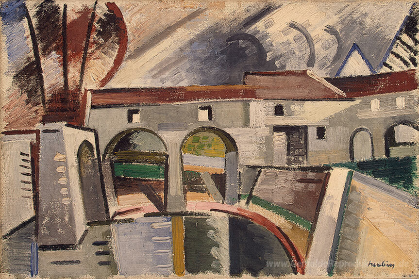 Wir bieten Ihnen eine handgefertigte Reproduktion auf Leinwand des berühmten Kunstwerks 'Mühle auf dem Marn, Creteil' von Auguste Herbin, aus dem Reproduktionsmuseum.