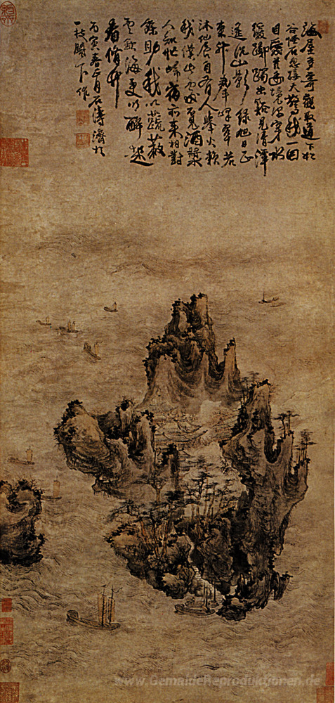 Die künstlerischen Techniken, die in diesem Werk zum Einsatz kommen, verleihen dem Gemälde eine unverwechselbare Tiefe und Dynamik, die Ihrem Wohn- oder Arbeitsraum eine besondere Note verleihen kann. Mit seiner ausdrucksstarken Symbolik und der Fähigkeit, Emotionen zu wecken, transformiert das Kunstwerk jeden Raum in ein inspirierendes Ambiente, das zum Verweilen einlädt. Entdecken Sie die Schönheit und Eleganz von Shitaos Schaffen und lassen Sie sich von der Kunst verzaubern.