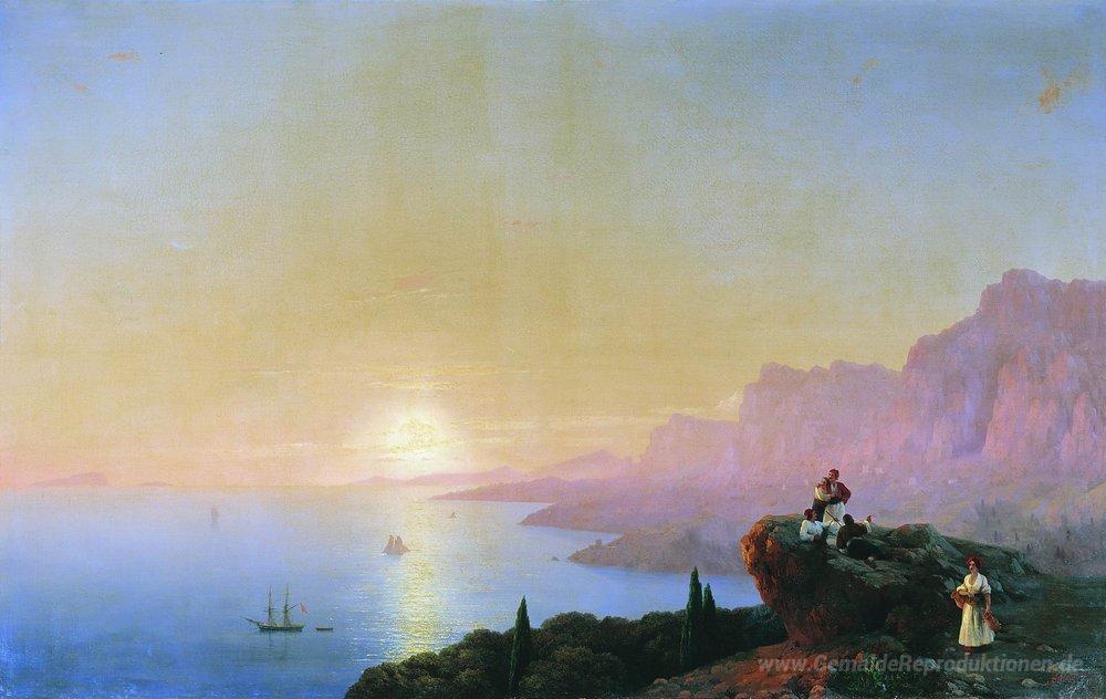Wir bieten Ihnen eine handgefertigte Reproduktion auf Leinwand des berühmten Kunstwerks 'Meeresbucht' von Ivan Aivazovsky, aus dem Reproduktionsmuseum.