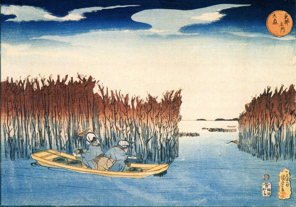 Wir bieten Ihnen eine handgefertigte Reproduktion auf Leinwand des berühmten Kunstwerks 'Meerespflanze-Sammler bei Omari' von Utagawa Kuniyoshi, aus dem Reproduktionsmuseum.