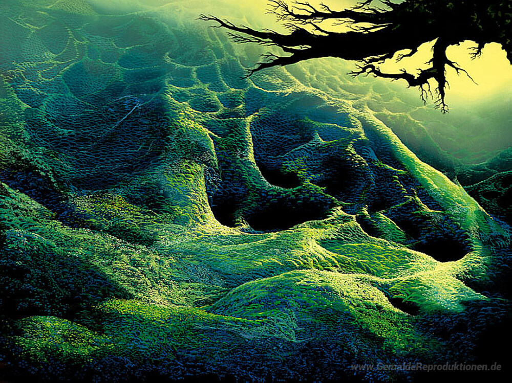 Wir bieten Ihnen eine handgefertigte Reproduktion auf Leinwand des berühmten Kunstwerks 'Meine Seele' von Eyvind Earle, aus dem Reproduktionsmuseum.
