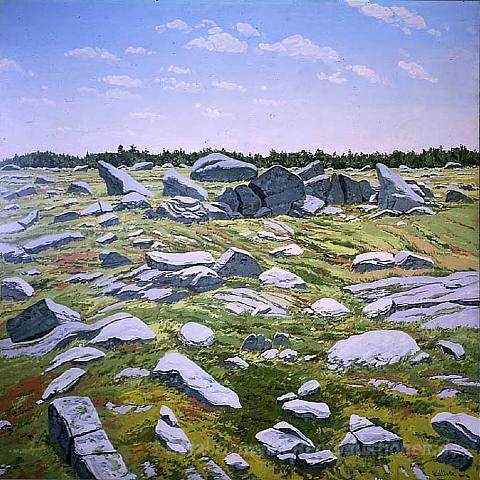 Wir bieten Ihnen eine handgefertigte Reproduktion auf Leinwand des berühmten Kunstwerks 'Midday Barren' von Neil Welliver, aus dem Reproduktionsmuseum.