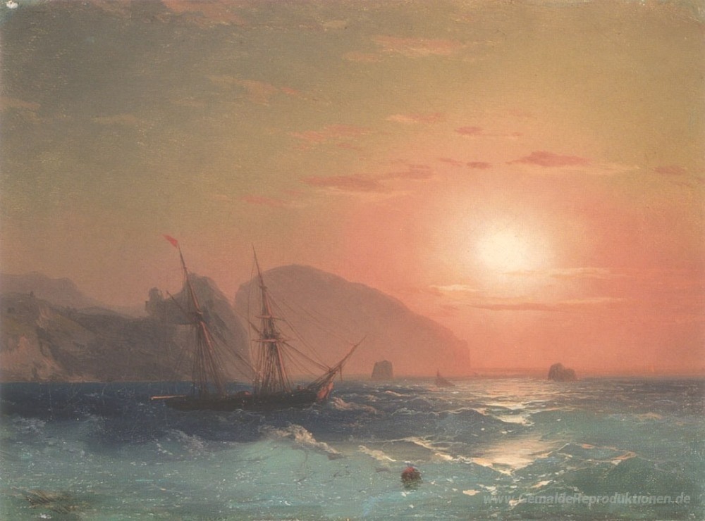 Wir bieten Ihnen eine handgefertigte Reproduktion auf Leinwand des berühmten Kunstwerks 'Mit Blick auf das Ayu Dag, Krim' von Ivan Aivazovsky, aus dem Reproduktionsmuseum.