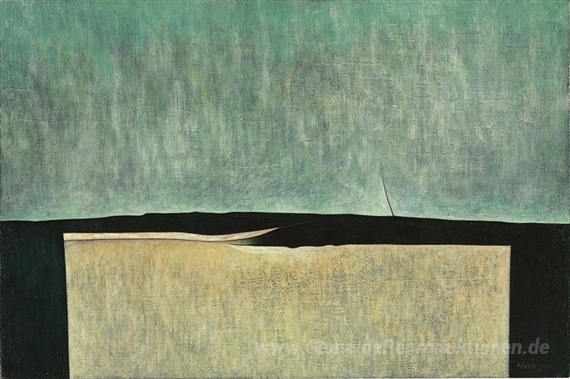 Wir bieten Ihnen eine handgefertigte Reproduktion auf Leinwand des berühmten Kunstwerks 'Mitologia' von Gunther Gerzso, aus dem Reproduktionsmuseum.