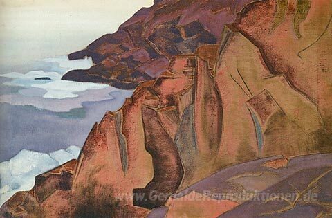 Wir bieten Ihnen eine handgefertigte Reproduktion auf Leinwand des berühmten Kunstwerks 'Monhegan (Erstellen)' von Nicholas Roerich, aus dem Reproduktionsmuseum.