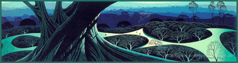 Wir bieten Ihnen eine handgefertigte Reproduktion auf Leinwand des berühmten Kunstwerks 'Moonlit Felder' von Eyvind Earle, aus dem Reproduktionsmuseum.
