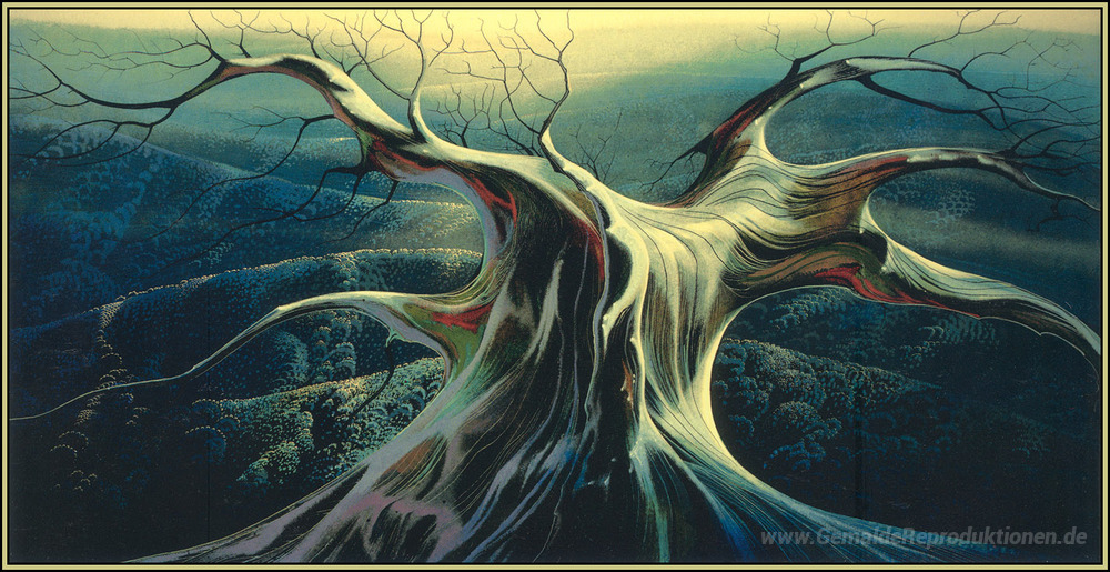 Wir bieten Ihnen eine handgefertigte Reproduktion auf Leinwand des berühmten Kunstwerks 'Moonlit Stamm' von Eyvind Earle, aus dem Reproduktionsmuseum.
