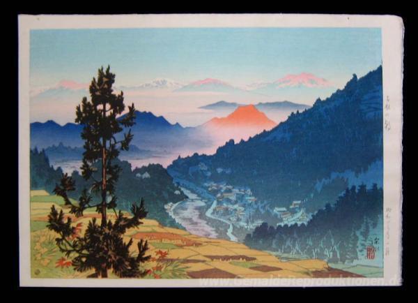 Wir bieten Ihnen eine handgefertigte Reproduktion auf Leinwand des berühmten Kunstwerks 'Morgen um Kambayashi' von Ito Shinsui, aus dem Reproduktionsmuseum.