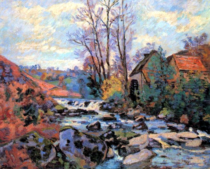 Wir bieten Ihnen eine handgefertigte Reproduktion auf Leinwand des berühmten Kunstwerks 'Moulin Bouchardon, Crozant' von Armand Guillaumin, aus dem Reproduktionsmuseum.