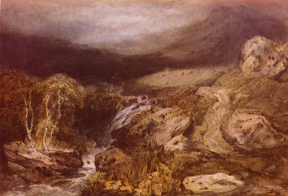 Wir bieten Ihnen eine handgefertigte Reproduktion auf Leinwand des berühmten Kunstwerks 'Mountain Stream, Coniston' von William Turner, aus dem Reproduktionsmuseum.