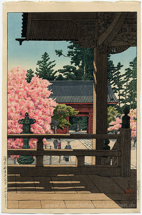 Wir bieten Ihnen eine handgefertigte Reproduktion auf Leinwand des berühmten Kunstwerks 'Myohon Temple, Kamakura' von Hasui Kawase, aus dem Reproduktionsmuseum.