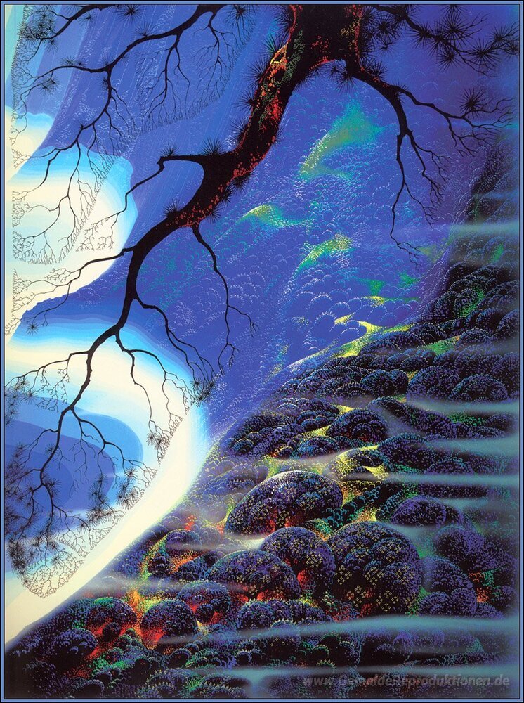 Willkommen in der faszinierenden Welt der Ölgemälde, wo Kunst und Leidenschaft aufeinandertreffen. Unsere sorgfältig ausgewählten Werke, darunter das beeindruckende Gemälde Mystical Big Sur des renommierten Künstlers Eyvind Earle, bringen die Magie der Natur direkt in Ihr Zuhause. Earle, bekannt für seinen einzigartigen Stil, verbindet lebendige Farben mit scharfen, geometrischen Formen und schafft so eine tiefgründige Atmosphäre, die die Sinne anregt.