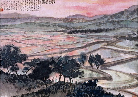 Wir bieten Ihnen eine handgefertigte Reproduktion auf Leinwand des berühmten Kunstwerks 'Nähern Yanbian' von Fu Baoshi, aus dem Reproduktionsmuseum.