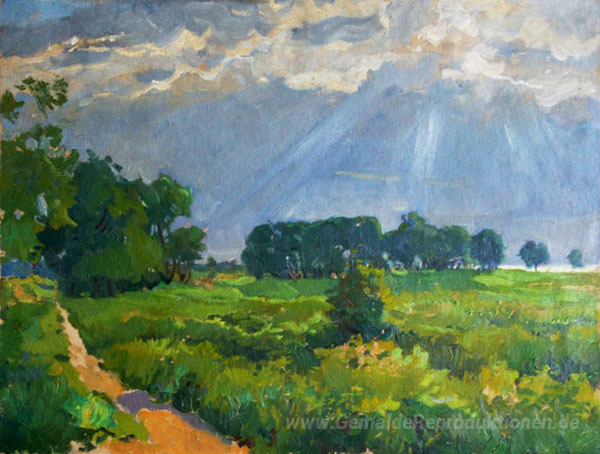 Wir bieten Ihnen eine handgefertigte Reproduktion auf Leinwand des berühmten Kunstwerks 'Nach dem Regen' von Veniamin Kremer, aus dem Reproduktionsmuseum.