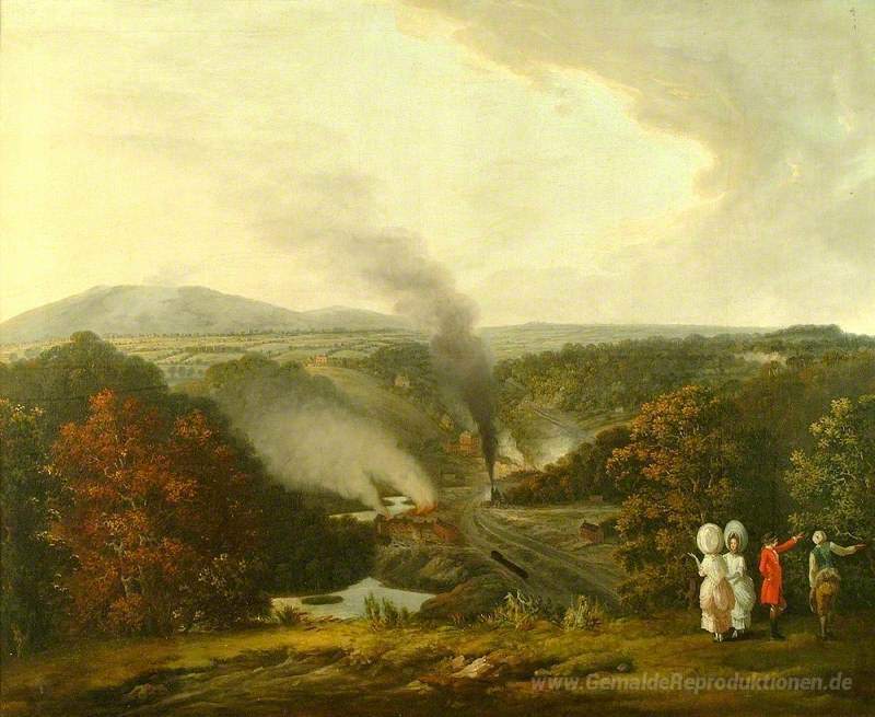 Wir bieten Ihnen eine handgefertigte Reproduktion auf Leinwand des berühmten Kunstwerks 'Nachmittag Ansicht von Coalbrookdale, Shropshire' von William Williams, aus dem Reproduktionsmuseum.