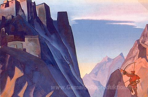 Wir bieten Ihnen eine handgefertigte Reproduktion auf Leinwand des berühmten Kunstwerks 'Nachricht von Shambhala' von Nicholas Roerich, aus dem Reproduktionsmuseum.