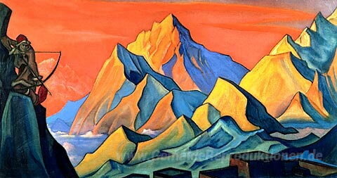 Wir bieten Ihnen eine handgefertigte Reproduktion auf Leinwand des berühmten Kunstwerks 'Nachricht von Shambhala (Pfeil-letter)' von Nicholas Roerich, aus dem Reproduktionsmuseum.