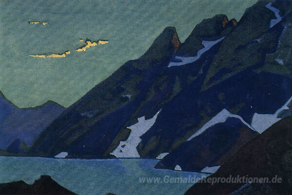 Wir bieten Ihnen eine handgefertigte Reproduktion auf Leinwand des berühmten Kunstwerks 'Nag See. Kaschmir.' von Nicholas Roerich, aus dem Reproduktionsmuseum.