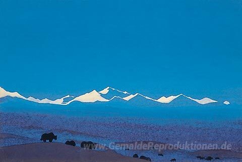 Wir bieten Ihnen eine handgefertigte Reproduktion auf Leinwand des berühmten Kunstwerks 'Nan Shan, Tibetan Frontier' von Nicholas Roerich, aus dem Reproduktionsmuseum.