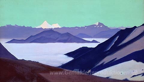 Wir bieten Ihnen eine handgefertigte Reproduktion auf Leinwand des berühmten Kunstwerks 'Nebel in den Bergen' von Nicholas Roerich, aus dem Reproduktionsmuseum.