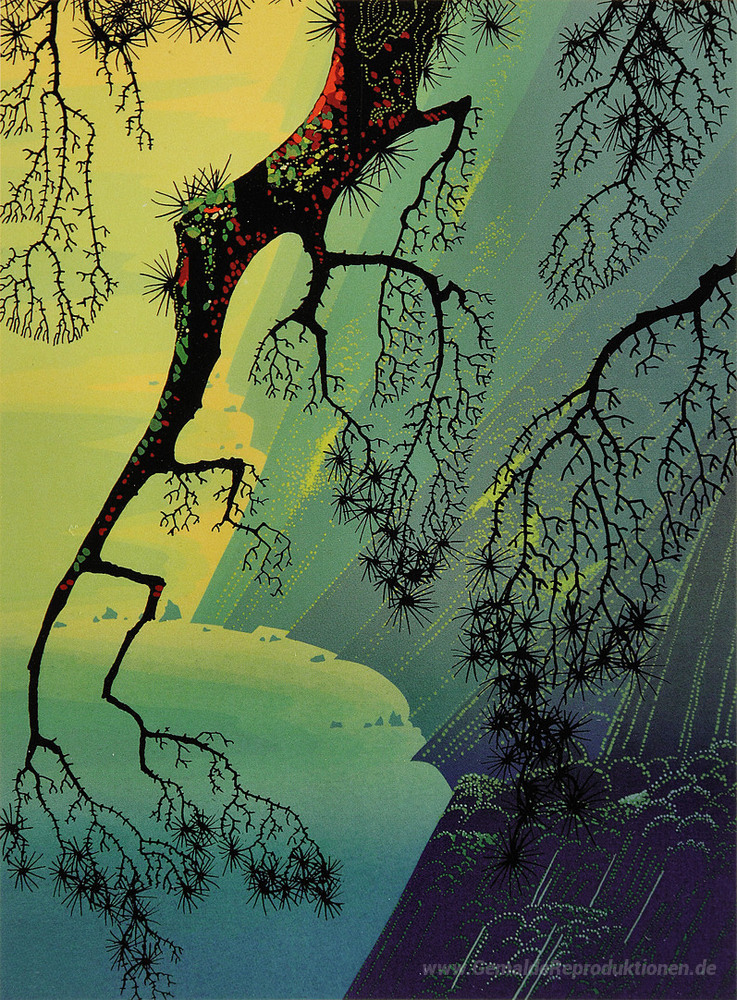 Wir bieten Ihnen eine handgefertigte Reproduktion auf Leinwand des berühmten Kunstwerks 'Nebel Nebel' von Eyvind Earle, aus dem Reproduktionsmuseum.