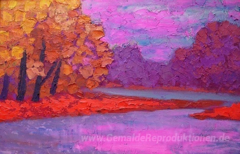 Wir bieten Ihnen eine handgefertigte Reproduktion auf Leinwand des berühmten Kunstwerks 'Nightfall an der Donau-Küste' von Endre Bartos, aus dem Reproduktionsmuseum.