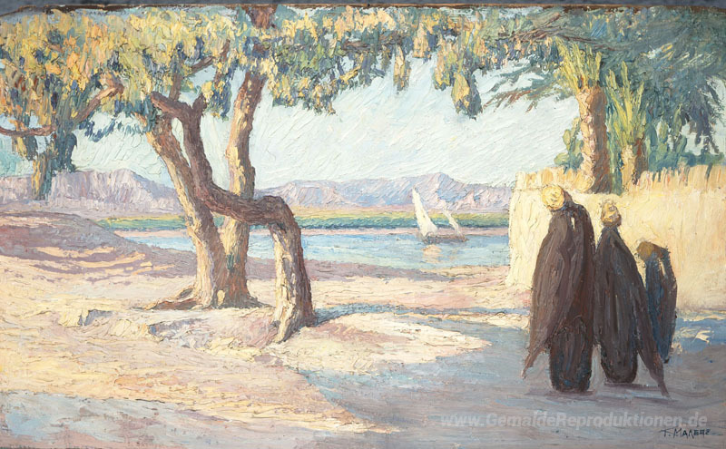 Wir bieten Ihnen eine handgefertigte Reproduktion auf Leinwand des berühmten Kunstwerks 'Nil-Landschaft' von Constantine Maleas, aus dem Reproduktionsmuseum.