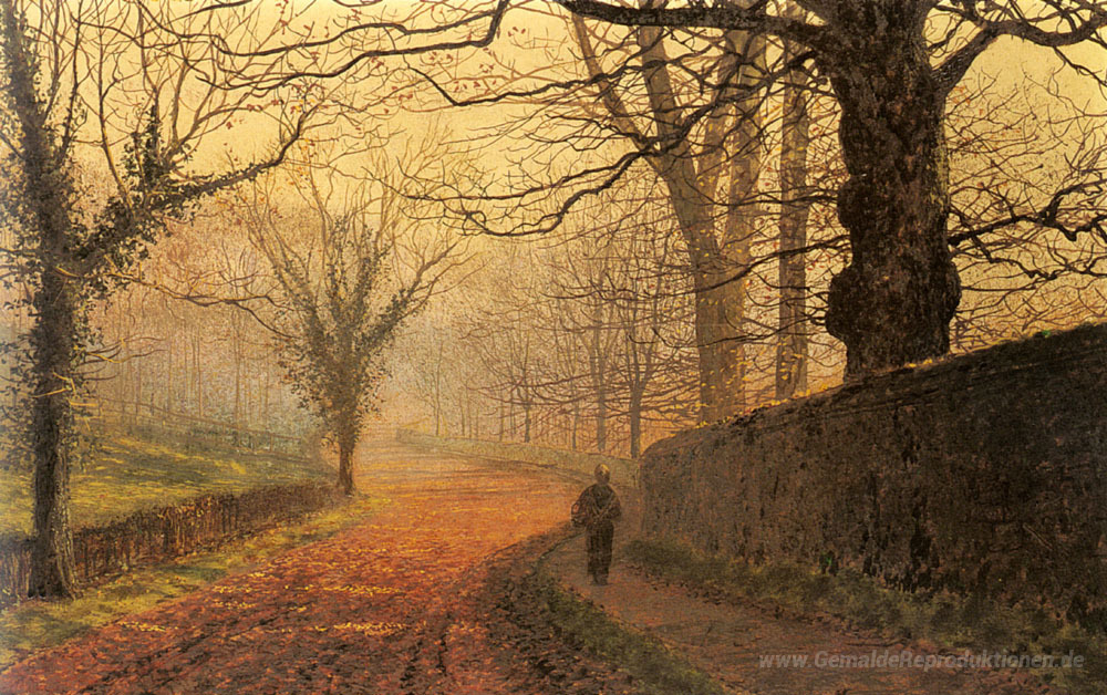 Wir bieten Ihnen eine handgefertigte Reproduktion auf Leinwand des berühmten Kunstwerks 'November Nachmittag, Stapleton Park' von John Atkinson Grimshaw, aus dem Reproduktionsmuseum.