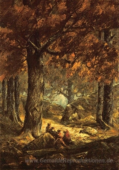 Wir bieten Ihnen eine handgefertigte Reproduktion auf Leinwand des berühmten Kunstwerks 'Nuss-Sammler im Wald' von Homer Watson, aus dem Reproduktionsmuseum.