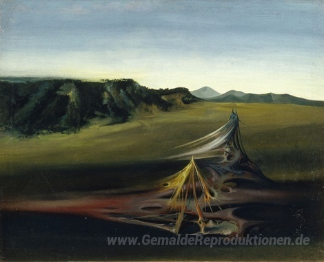 Wir bieten Ihnen eine handgefertigte Reproduktion auf Leinwand des berühmten Kunstwerks 'Organische Landschaft' von Jules Perahim, aus dem Reproduktionsmuseum.