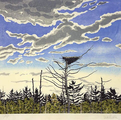 Wir bieten Ihnen eine handgefertigte Reproduktion auf Leinwand des berühmten Kunstwerks 'Osprey Nest' von Neil Welliver, aus dem Reproduktionsmuseum.