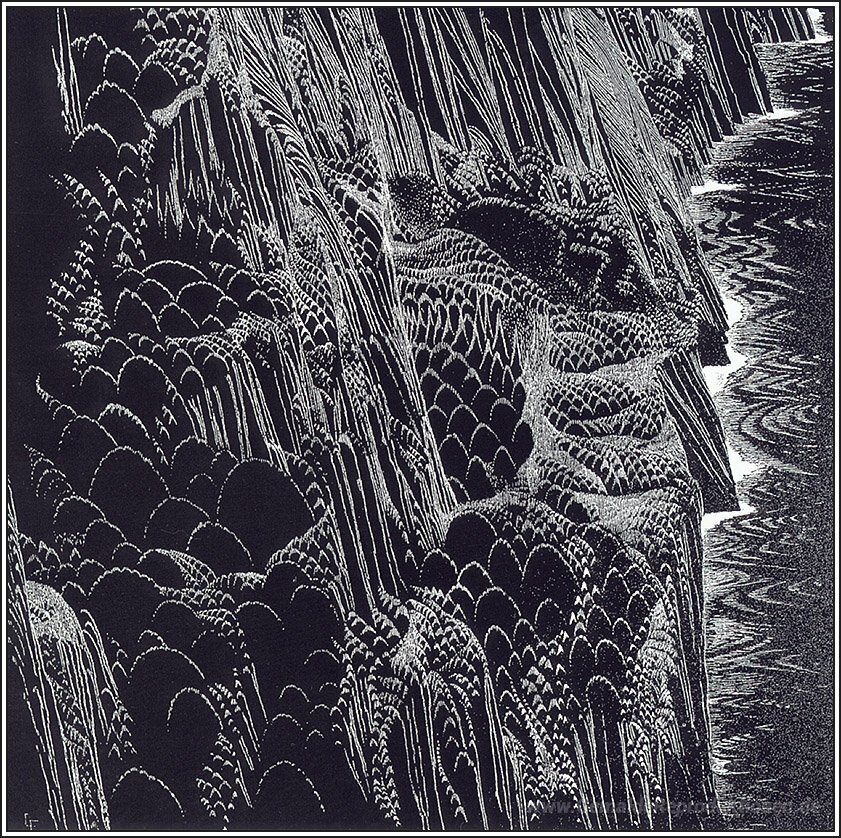 Wir bieten Ihnen eine handgefertigte Reproduktion auf Leinwand des berühmten Kunstwerks 'Ozean-Klippen' von Eyvind Earle, aus dem Reproduktionsmuseum.