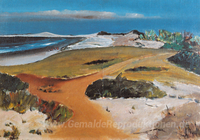 Wir bieten Ihnen eine handgefertigte Reproduktion auf Leinwand des berühmten Kunstwerks 'Paisagem com dunas' von Jose Pancetti, aus dem Reproduktionsmuseum.