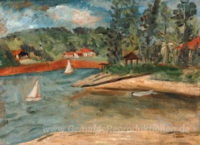 Wir bieten Ihnen eine handgefertigte Reproduktion auf Leinwand des berühmten Kunstwerks 'Paisagem da represa de Sto Amaro' von Mario Zanini, aus dem Reproduktionsmuseum.