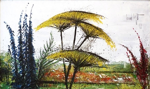 Wir bieten Ihnen eine handgefertigte Reproduktion auf Leinwand des berühmten Kunstwerks 'Paysage aux Ombelles' von Bernard Buffet, aus dem Reproduktionsmuseum.
