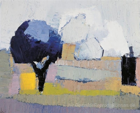 Wir bieten Ihnen eine handgefertigte Reproduktion auf Leinwand des berühmten Kunstwerks 'Paysage de Provence' von Nicolas de Staël, aus dem Reproduktionsmuseum.