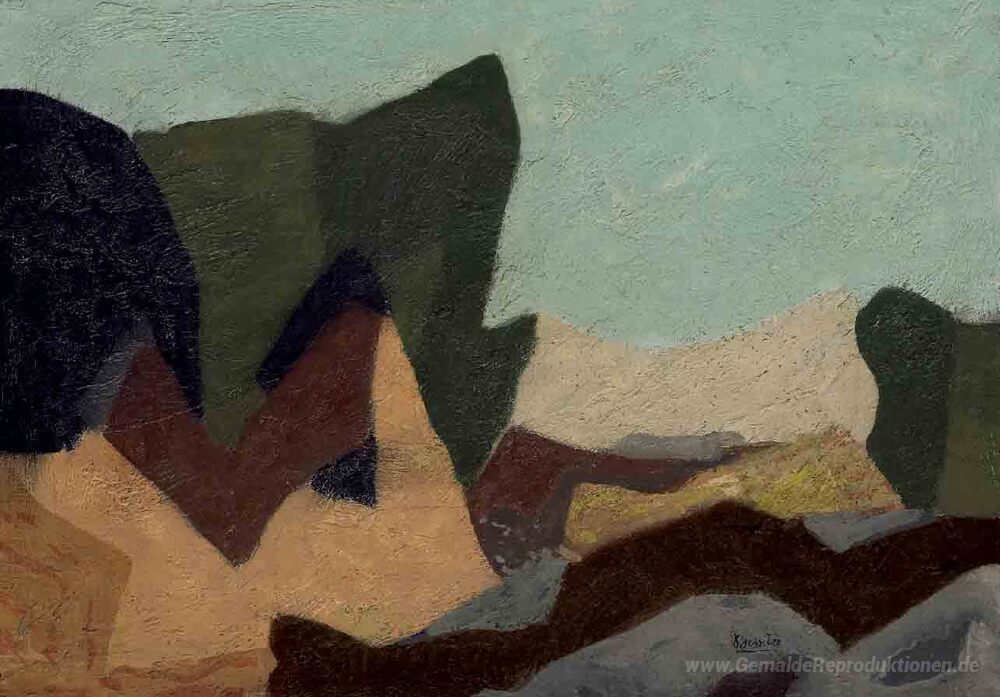 Wir bieten Ihnen eine handgefertigte Reproduktion auf Leinwand des berühmten Kunstwerks 'Paysage' von Roger Bissière, aus dem Reproduktionsmuseum.