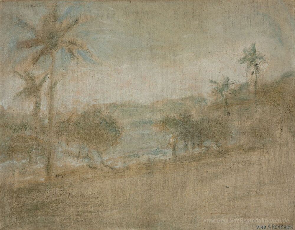 Wir bieten Ihnen eine handgefertigte Reproduktion auf Leinwand des berühmten Kunstwerks 'Playa de Macuto' von Armando Reveron, aus dem Reproduktionsmuseum.