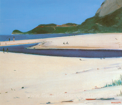 Wir bieten Ihnen eine handgefertigte Reproduktion auf Leinwand des berühmten Kunstwerks 'Praia da Gávea' von Jose Pancetti, aus dem Reproduktionsmuseum.